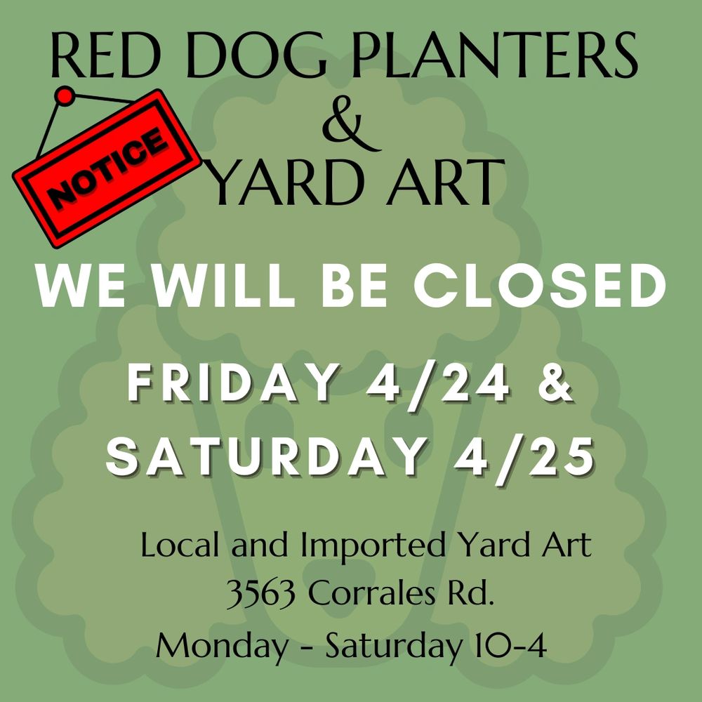 Have questions? 505-610-1237 RedDogPlanters@gmail.com Our outdoor shop is open April 1 -October 31